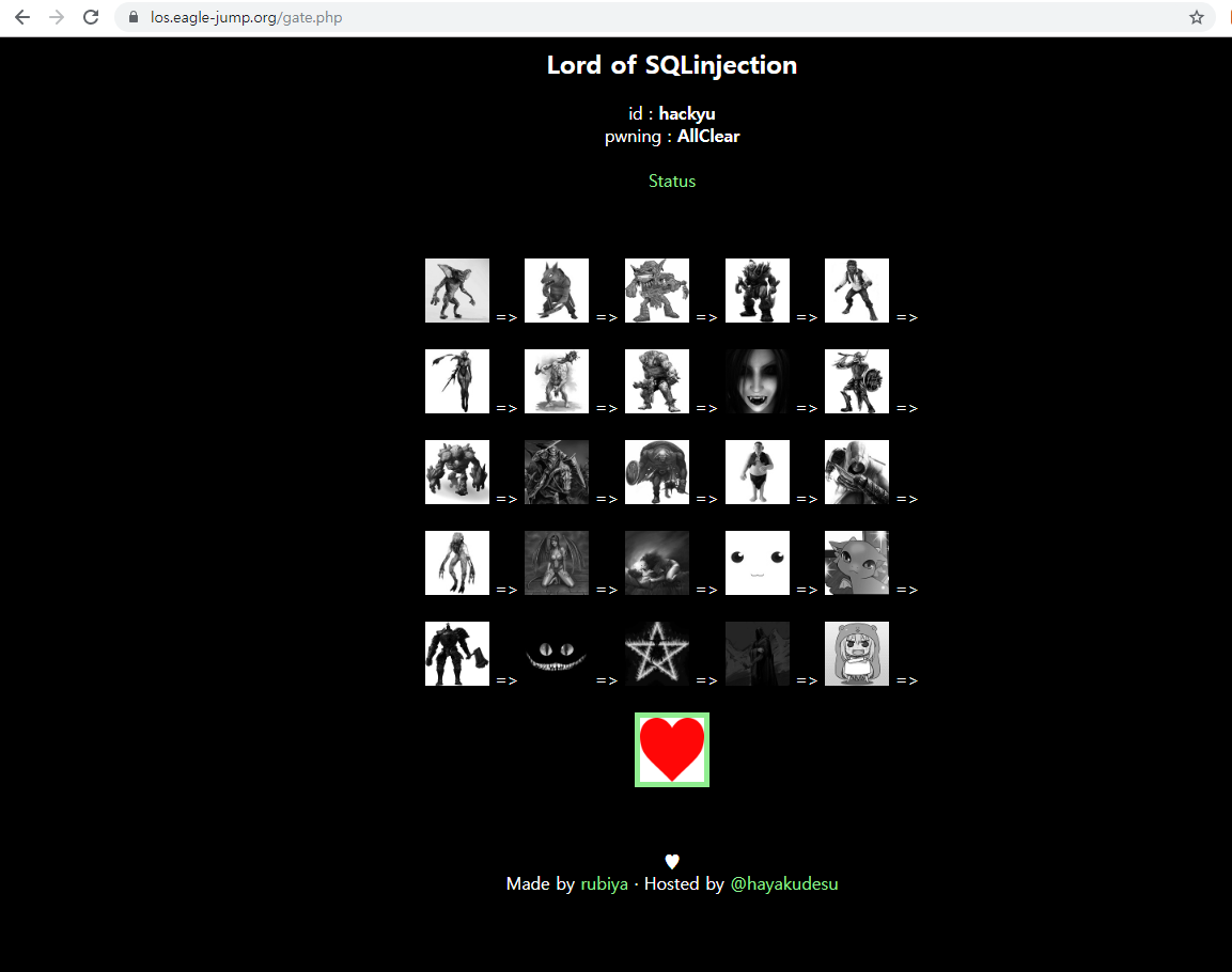 해당 워게임 사이트를 통해 SQL Injection 공부가 많이 되었던 것으로 기억한다. 해당 URL 말고도 다른 버전의 LOS도 있고 SQL Injection을 할 수 있는 좋은 워게임 사이트들이 있는 것을 알고 있다. 개발 보안 둘다 좋다. 꾸준히 하자...